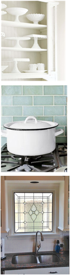 Not only functional, a stained glass window behind the sink also serves as a piece of art.
