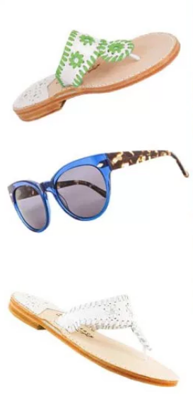 Ladies, when it comes to accessories, it’s all about color and making a statement. Straw hats for around the pool or for a stroll up the avenue, bold jewelry often in natural elements like wood or metal, and a pair of Jack Rogers sandals will keep you looking as chic as Jackie Kennedy back in the day. (Yes, she was known to rock a pair of Jack Rogers.) And, don’t forget the oversized shades.