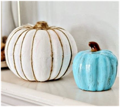 Think outside the autumn color box! Pumpkins and other fall elements don’t have to be orange or brown. White, blue, sea foam green, gold, and other metallics have become popular in many coastal homes. They can be found in many stores and shops. If you’re the artsy type, you can spray paint or use fabric to cover real or artificial pumpkins. That way, you can match or coordinate with the other colors in your home.